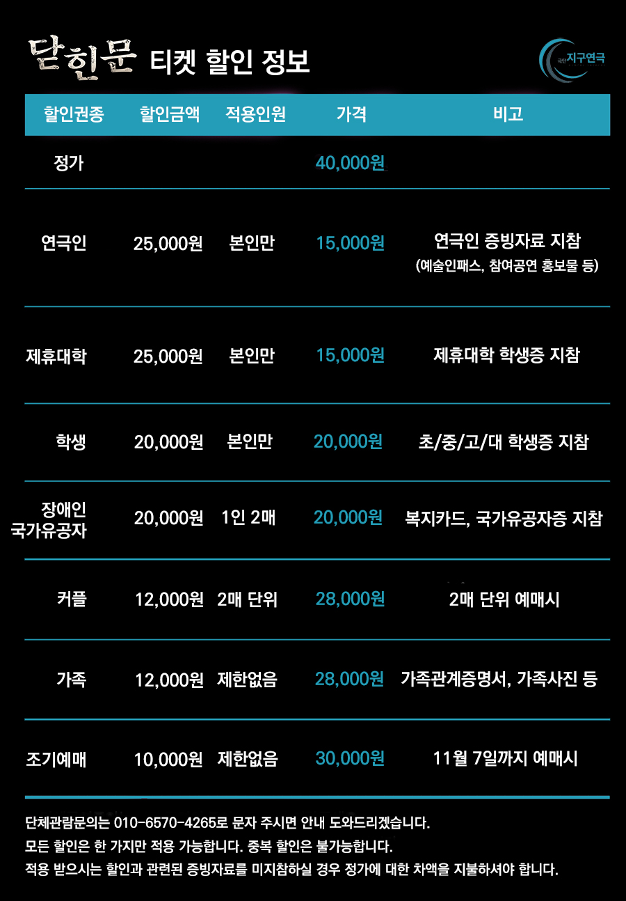 (공연당일에 반드시 할인권종 해당 증빙자료를 현장 지참하셔야합니다.)