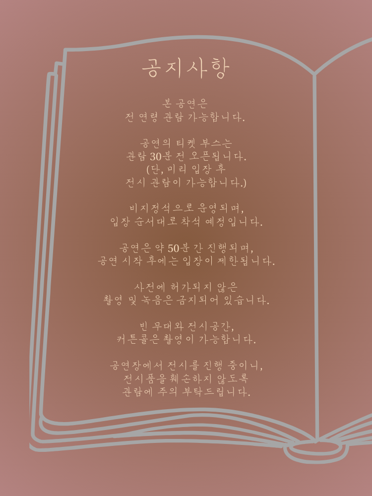 ⑤ 공연장 내 음식물 반입(물, 음료 포함) 및 사진촬영이 금지되어 있습니다.