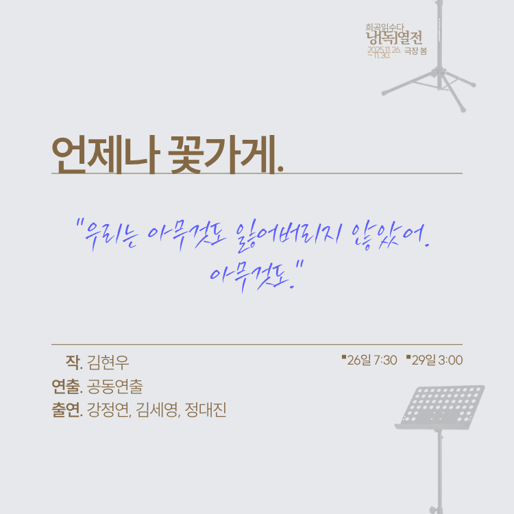 *11/29(토) 3:00 하이웨이, 흔해빠진 독서, 노웨어, 언제나 꽃가게