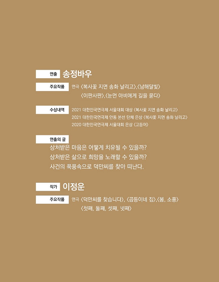 <덕만씨를 찾습니다> - 제46회 서울연극제 자유경연작 [판매마감]
