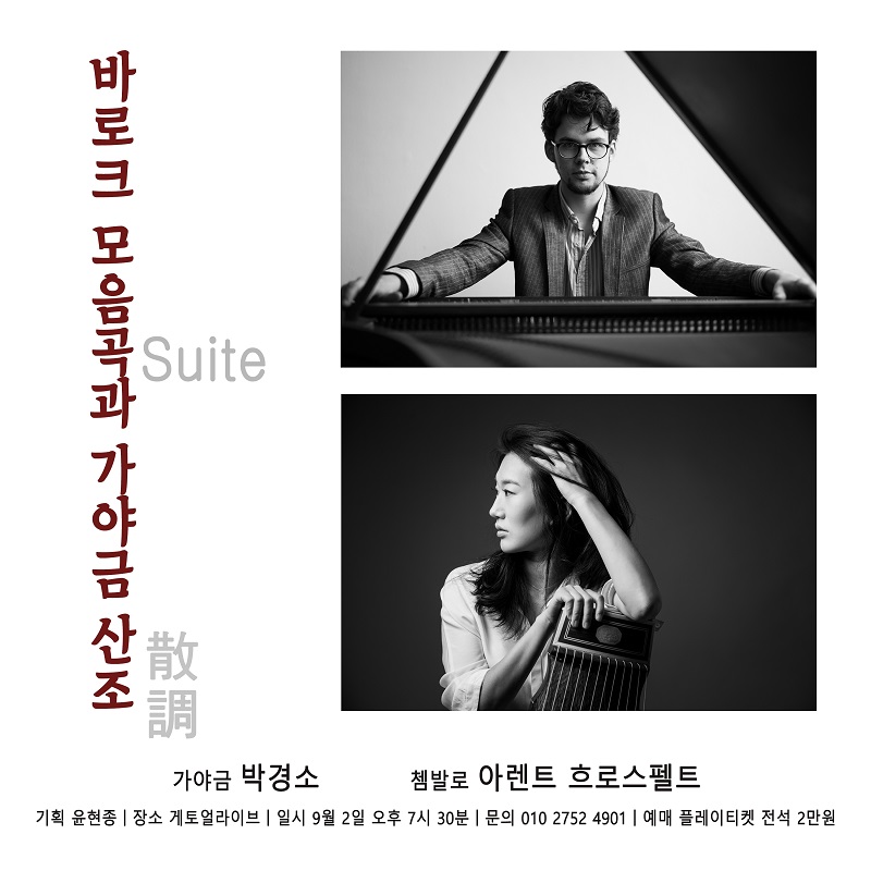 유럽의 바로크 모음곡과 한국의 대표적 기악곡인 산조는 다양한 리듬(장단)으로 구성되었다는 구조적 유사점이 있습니다. 각 문화권에서 발달한 두 음악을 한 자리에서 연주자들의 설명과 연주를 통해 경험 할 수 있는 자리를 마련했습니다.