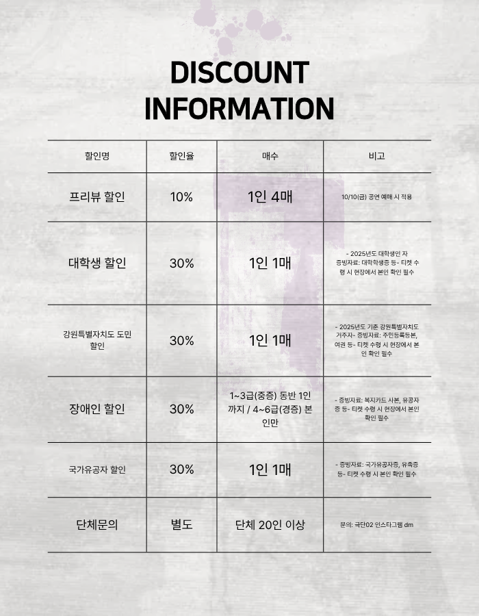 (공연당일에 반드시 할인권종 해당 증빙자료를 현장 지참하셔야합니다.)