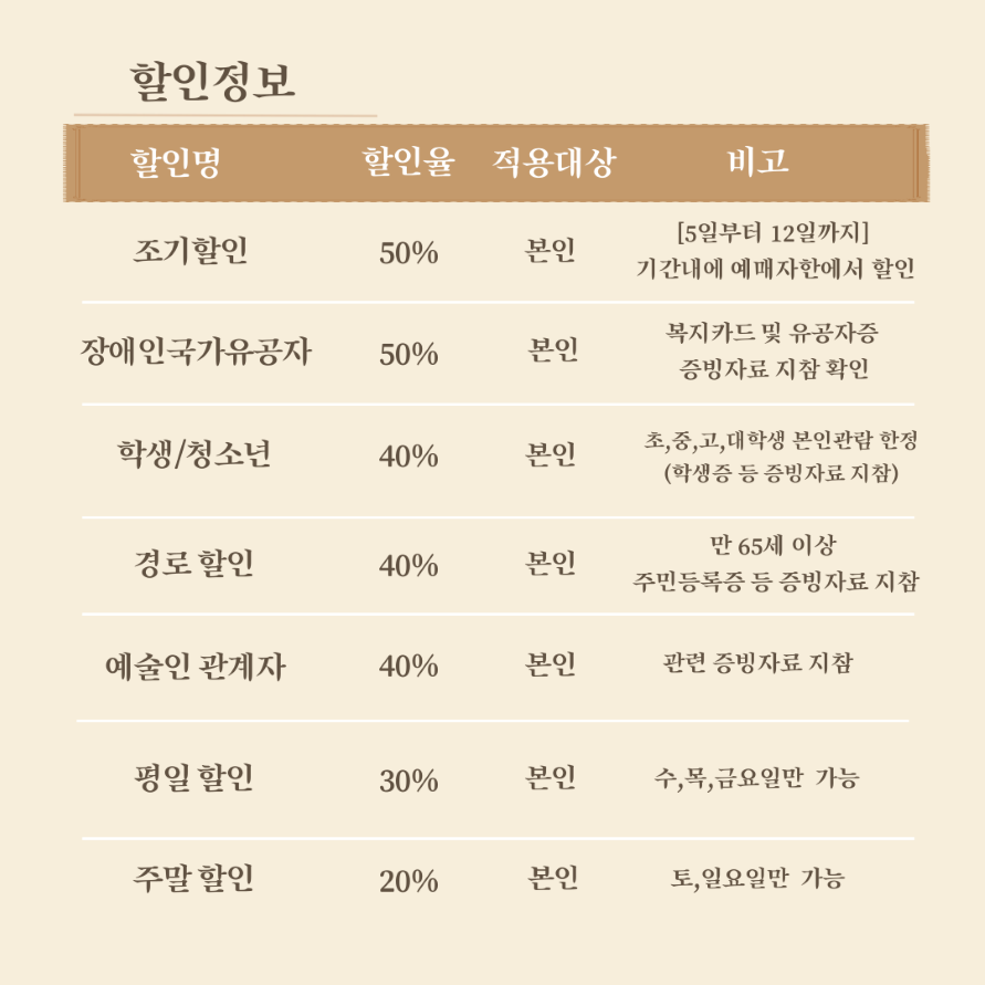 (공연당일에 반드시 할인권종 해당 증빙자료를 현장 지참하셔야합니다.)