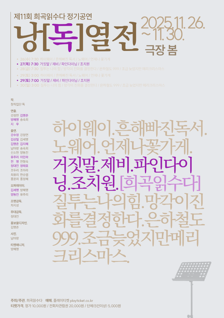 희곡읽수다 낭[독]열전 (퍼플, 11/27, 29) [판매중]
