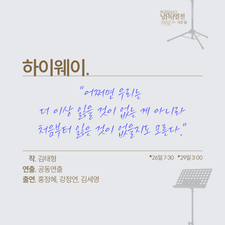 *11/29(토) 3:00 하이웨이, 흔해빠진 독서, 노웨어, 언제나 꽃가게