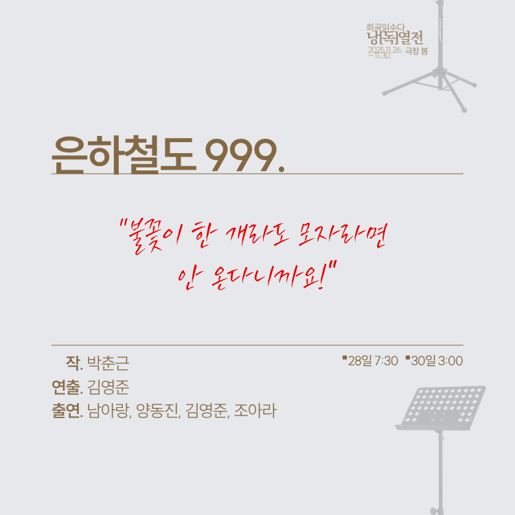 *11/30(일) 3:00 질투는 나의 힘, 망각이 진화를 결정한다, 은하철도999, 조금 늦었지만 메리크리스마스