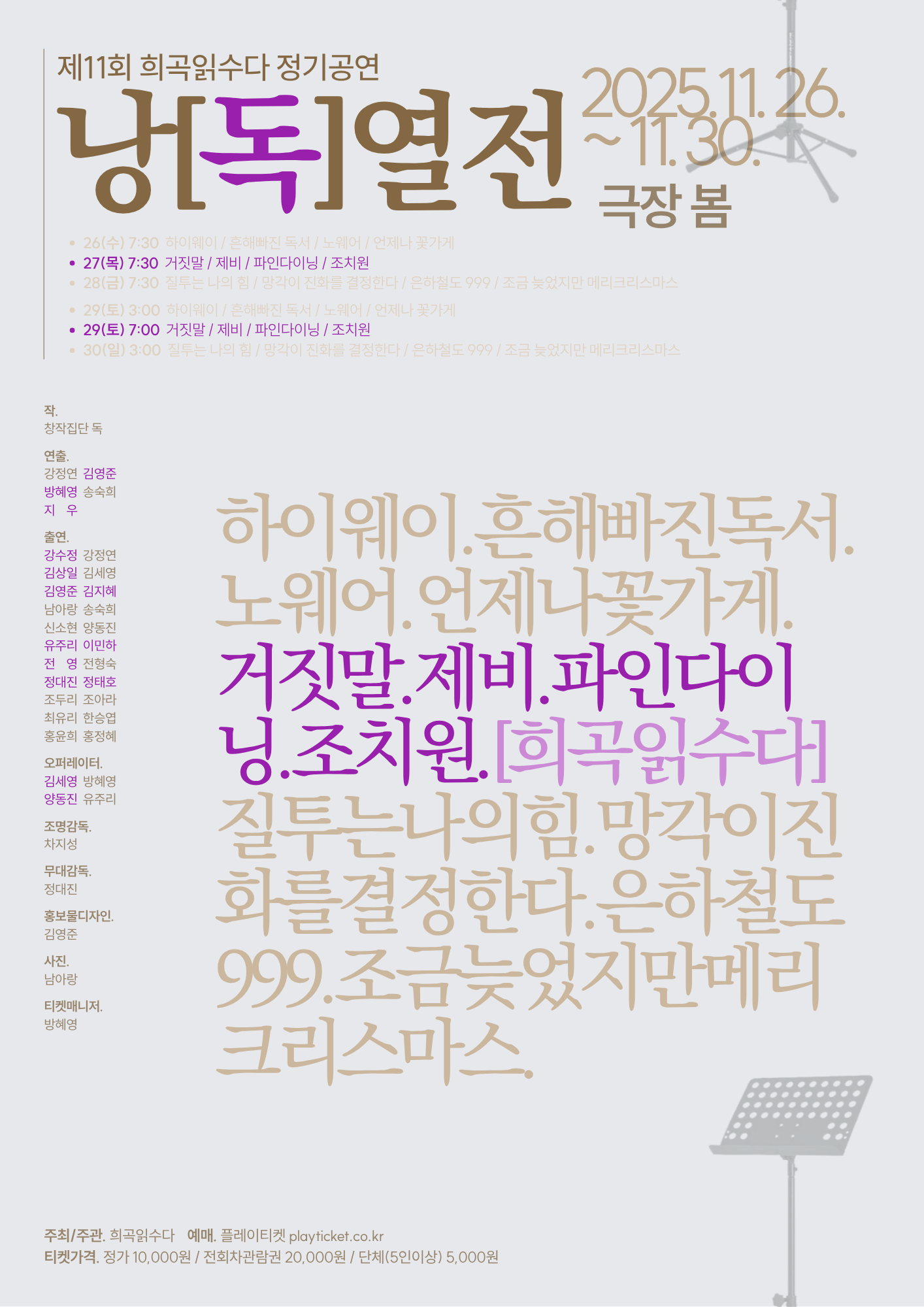 *11/29(토) 7:00 거짓말, 제비, 파인다이닝, 조치원