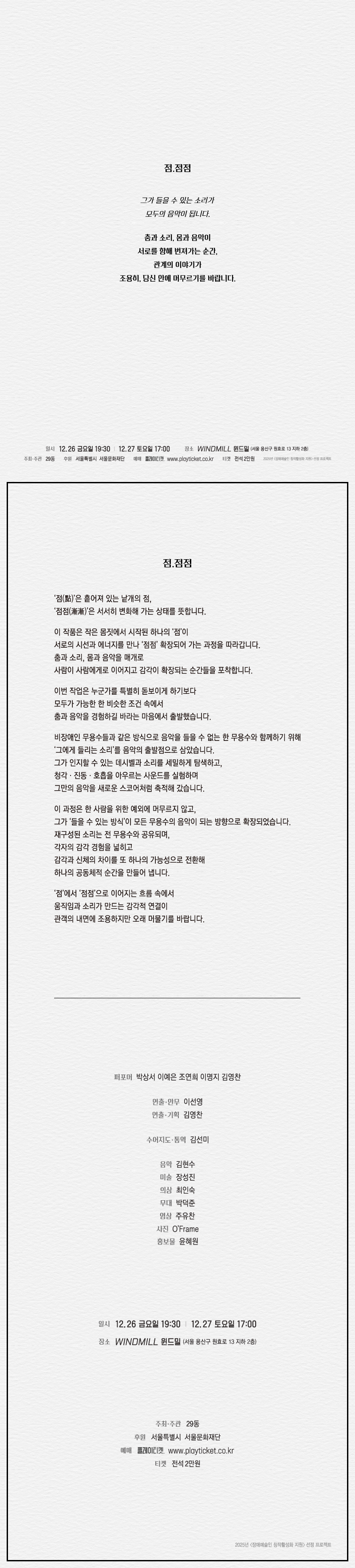 * 12.26(금) ~27(토) 2 회차 모두 공연 중 기록 영상 촬영이 진행됩니다.